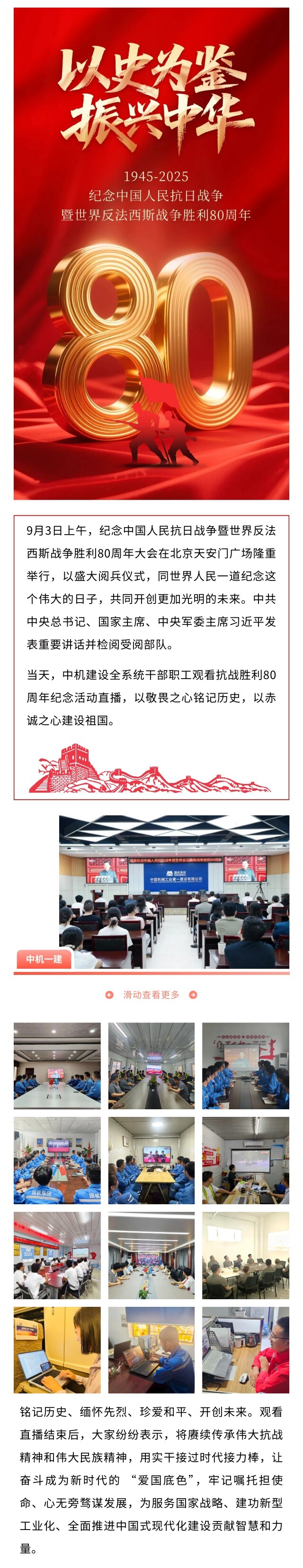 致敬伟大胜利!中机建设组织干部职工观看九三阅兵
